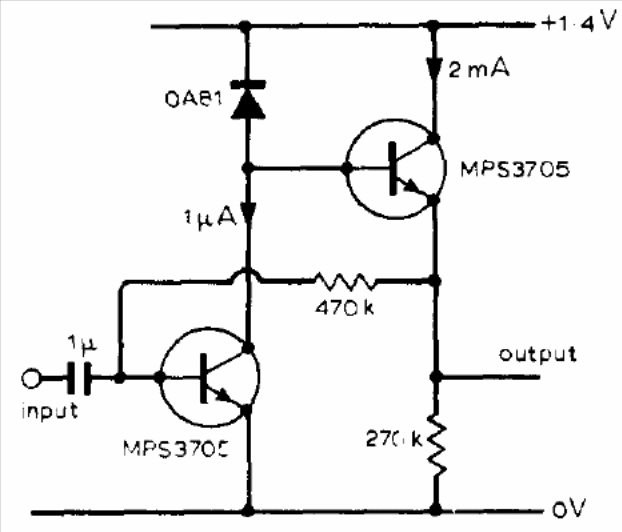 We found this circuit in an English publication in 1976. The circuit is based on the use of a germanium transistor as a current source. The circuit has a pass-through range of 16 to 4,000 Hz.