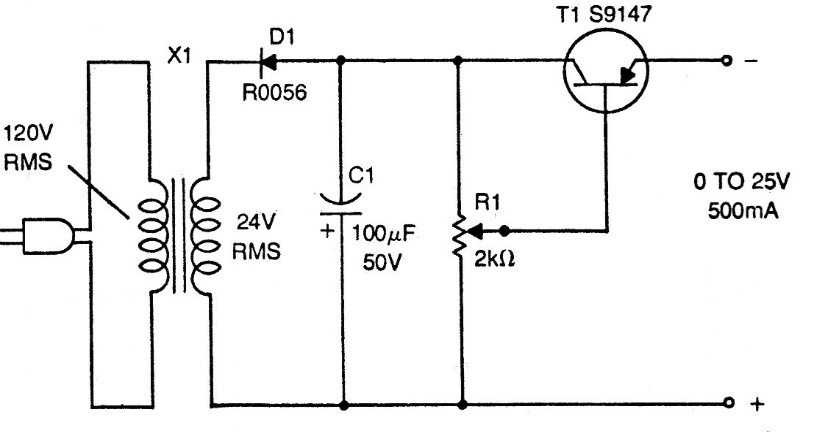 This circuit carries small batteries of Nicad that can be connected in series in number of up to 10. The batteries can be medium, small or large and the current is adjusted in the 2k2 or even 4k7 wire pot. The transistor can be the TIP32 and lower transformer secondary voltages can be used to charge a smaller amount of batteries. The circuit is from 1970s documentation. The transistor must have a heat radiator.
