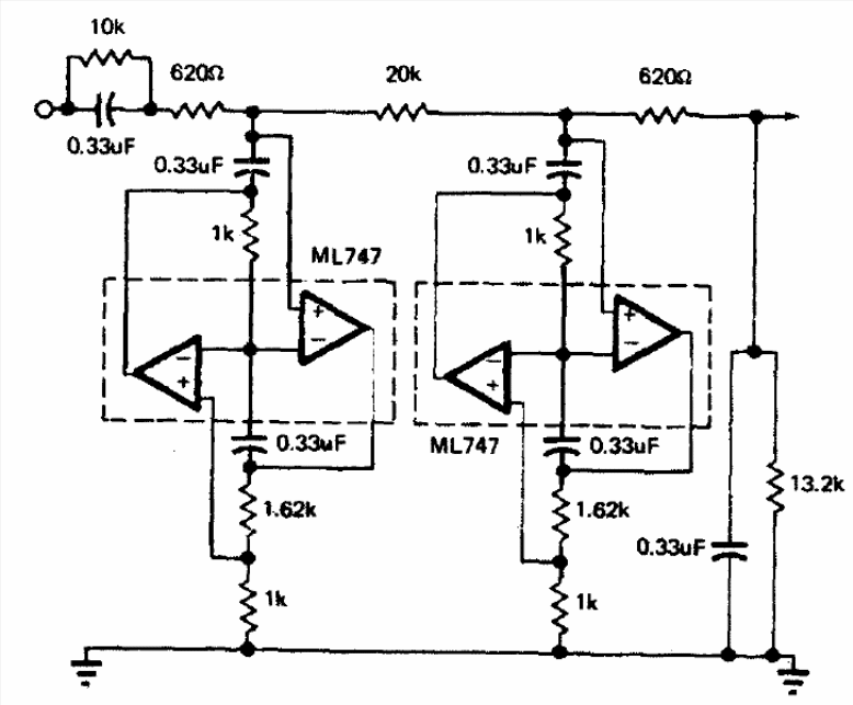 We found this circuit in a 1973 publication. The circuit lets frequencies below 480 kHz pass through with an output impedance of 1k. The circuit can be implemented with current operational.