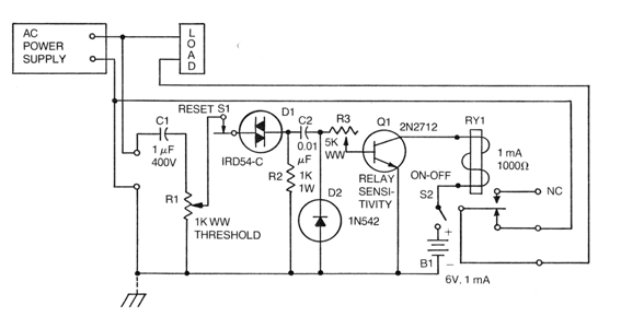 This circuit was obtained in a technical publication from the 1970s. It fires a diac and thus a low consumption relay (1 mA) when the input voltage exceeds a value set in R1. The transistor can be the BC548 and the setting depends on the type of diac.