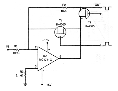 The operational amplifier of this configuration from the 70s is the 741 in its Motorola version from the 70s. The FETs can be the BF245 or equivalent. The power supply must be symmetrical according to the characteristics of the components and the application.