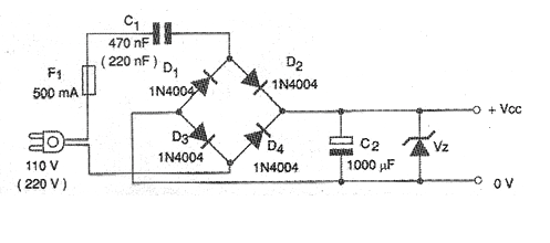 A very simple and useful type of power supply is one that does not use the transformer. Although this component is highly recommended, given the isolation it provides, there are cases in which, due to economy, space limitations or even the lack of such great security, a power supply without a transformer can be used. These sources take advantage of the capacitive reactance of a capacitor, usually high voltage polyester, to reduce the voltage of the power grid.