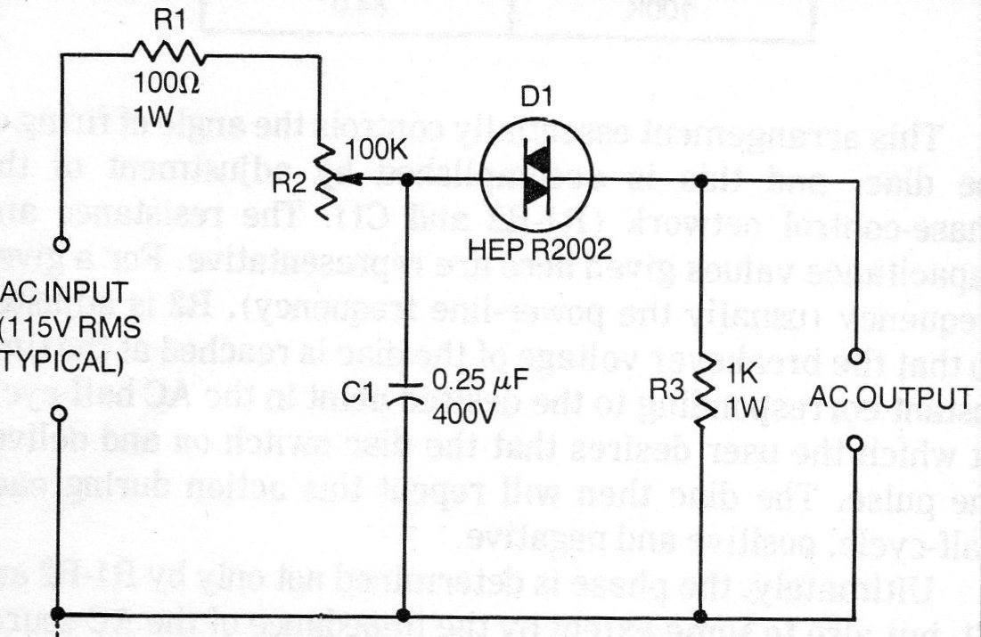 This circuit is from a publication about thyristors from the 70s. It consists of a pulse generator whose phase angle depends on the R2 setting. It can be used as a basis for power control. Other diacs can be used, since for most types the trigger voltage is around 30 V. The circuit also works on the 220 V network with a change in capacitor C1.