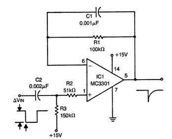 We found this circuit in a Motorola publication from the 70s. The circuit can be implemented with modern operational amplifiers. The values of the R1 / C1 network determine the integration constant and can be changed. Other supply voltages can be used depending on the operatinional characteristics.