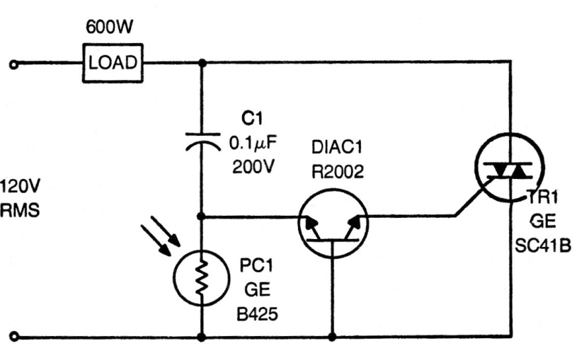 This circuit is from an old publication from the 70s, but it can be implemented with modern diacs and triacs and cargo according to the triac. The load must be resistive and the LDR can be of any common type. Two-terminal diacs can be used, leaving the ground connection disconnected in the original circuit. The circuit also works with 220 V and the use of components for this voltage.