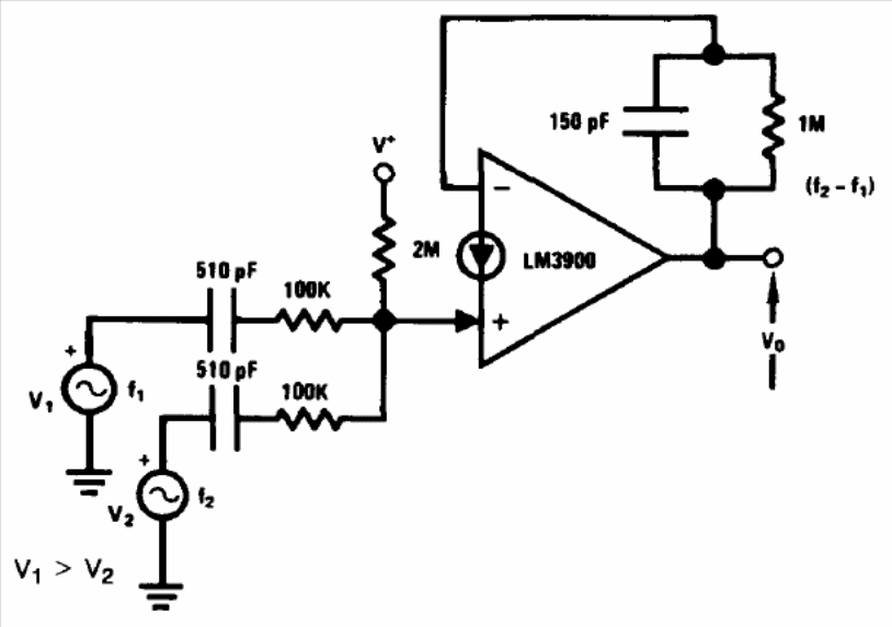 The presented circuit uses an LM3900, transconductance operational amplifier. It was found in the National Semiconductor Linear Applications Handbook of 1994, The circuit must use symmetrical power supply.