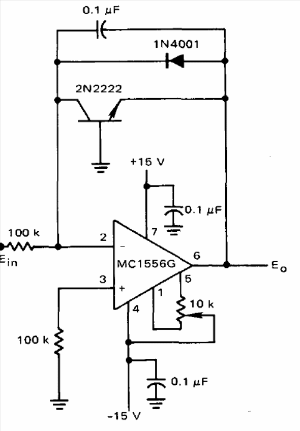 The circuit presented was found in a Motorola documentation from 19761, but it can be assembled with a more modern operational amplifier like the 741, which has an offset input for adjustment. The circuit must be powered by a symmetrical power supply.