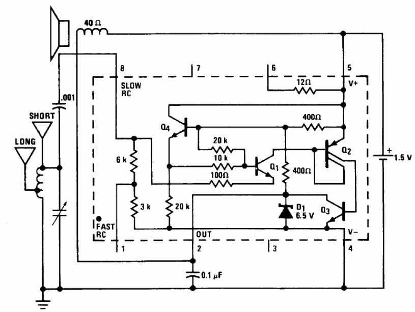 The circuit presented was obtained in a technical documentation from National Semiconductor. The coil consists of 20 + 80 turns of enameled wire 28 in a 15 to 20 cm long ferrite rod and the variable capacitor can be obtained from a standard MW radio.