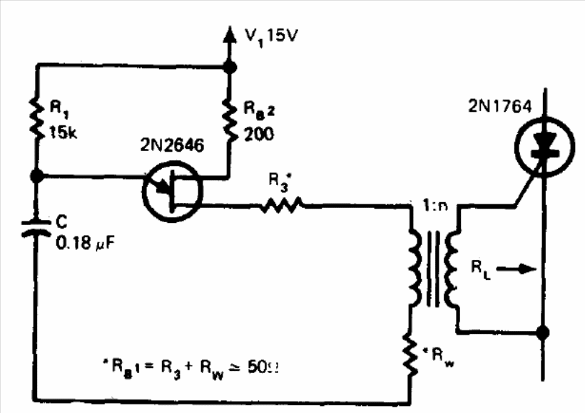 In the figure we show a trigger circuit for triacs with a unijunction transistor. The circuit is from an old publication. The pulse transformer has a turn ratio that depends on the triac used. TIC series triacs can be used in this circuit. Depending on the load, the SCR must be equipped with a heat radiator.