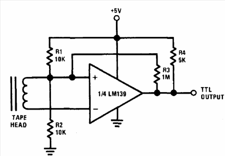 This reader with TTL logic compatible output uses an LM139 comparator. The circuit was found in the 1994 National Semiconductor Linear Applications Handbook.