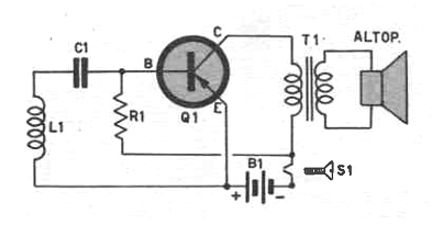 This circuit was found in an Italian magazine Radiorama from 1960, but it can be assembled with more modern transistors such as BC558 and powered with 6 V. The transformer can be obtained from an old transistor radio and the L1 coil consists of 500 to 100 turns of wire around a box that houses the device. This box, which seems empty, since the circuit is hidden, receives the signals of a link formed by a few turns under a carpet connected to an amplifier. The sounds emitted come out of the box and someone can speak into a microphone.