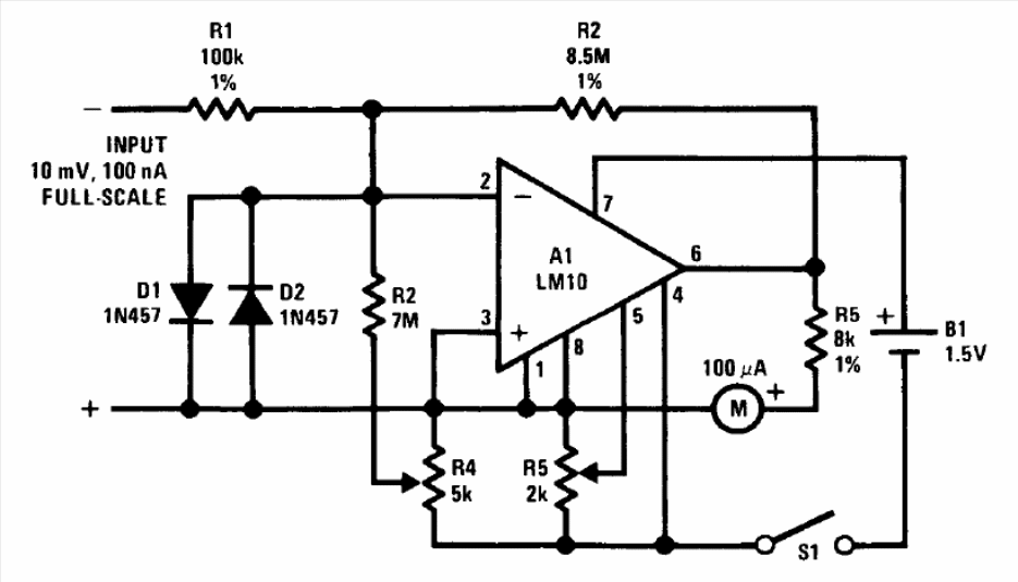 The LM10 is not common today, but the circuit can be adapted to operate with equivalent components. The circuit is from the 1994 Linear Applications Handbook by National Semiconductor.