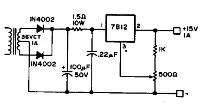 This circuit shows how to use a 12 V regulator to obtain a higher voltage output. The potentiometer must be 470 ohms since the indicated value is not currently standardized. The integrated circuit must be equipped with a heat radiator.