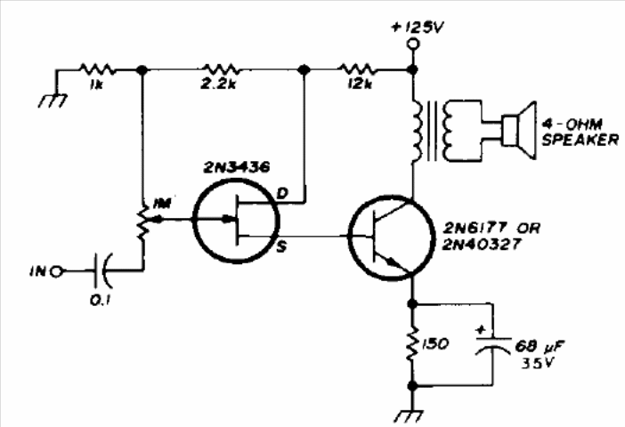 This audio step operates directly with the 110 V mains voltage rectified and reduced. The output transistor has no equivalent, and the transformer is an output type for tube receivers. The circuit is from 1976 documentation for radio amateurs.