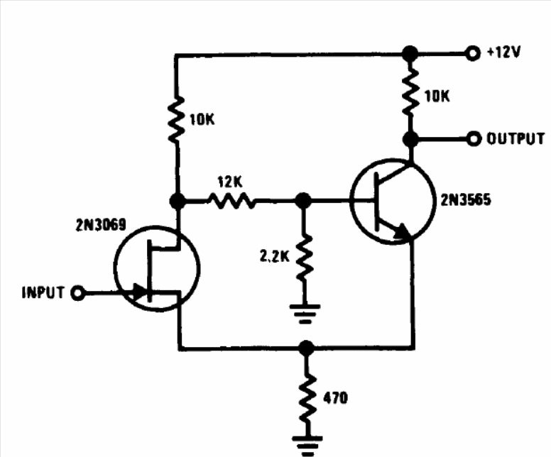 This circuit is from the 1994 Linear Applications Handbook by National Semiconductor. The FET can be the BF245 or MPF102 and the bipolar 2N2222. This circuit converts a signal of any waveform into a square signal.
