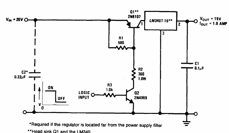 We found this configuration in the Linear Applications Handbook of the National Semiconductor of 1994. Both the integrated circuit and the transistor Q1 must be mounted on radiators. Transistors admits equivalents.
