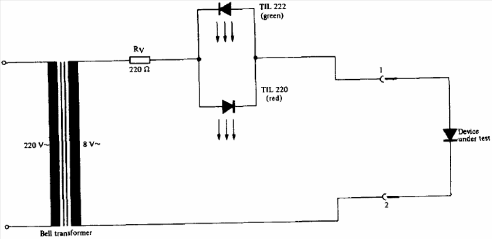 This LED diode test is suggested by the Texas Instruments optoelectronics manual. The transformer current can be between 50 mA and 300 mA and the voltage between 6 and 9 V.