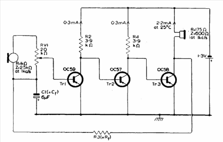 We found this circuit in the old Mullard transistor reference manual from 1960. The circuit is powered by a single battery and the transistors are germanium common at the time.