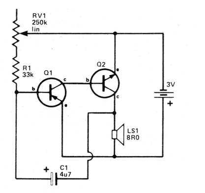 This traditional metronome configuration uses unusual transistors in the original version, but it can be mounted as BC548 for Q1 and BD136 for Q2. OP1 can also be 220 k. The circuit is from an English documentation from 1992. The power can also be made with 6 V or even 9 V.