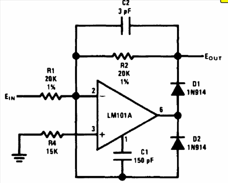 The circuit is from the 1994 National Semiconductor Linear Applications Handbook but can be implemented with more modern operational amplifiers. The power supply must be symmetrical.