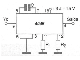 The CMOS 4046 integrated circuit is seldom used, both due to the difficulty of finding it and the fact that the well-known 567 is preferred in many applications in which it serves. However, this CML PLL is characterized by its low consumption and the fact that it can be configured so that only its internal VCO is used. How to do this is shown in the figure. In the circuit shown, the frequency range generated, depending on the control voltage, is given by the graph below.