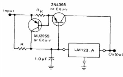 The circuit below is found in the manuals of several manufacturers in the LM123 series of regulators. This is from Motorola's 1990 Linear Databook. Transistors support equivalents and both the 2N4398 and the integrated circuit must be mounted on heat radiators.