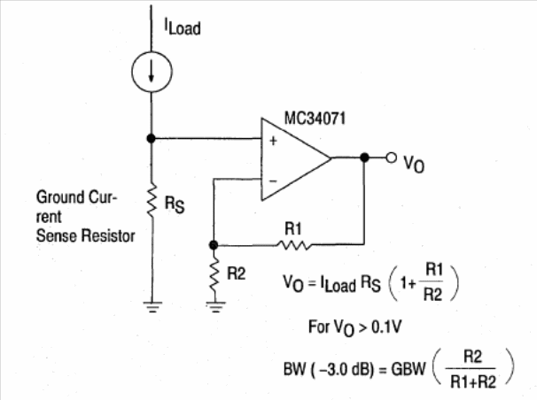 Other operational amplifiers in the series, such as the MC34072, MC34074, MC35071, MC35072, MC35074 d MC33071 can be used in this configuration found on Motorola's 1993 Linear Interface ICs. The circuit monitors leakage currents to earth.