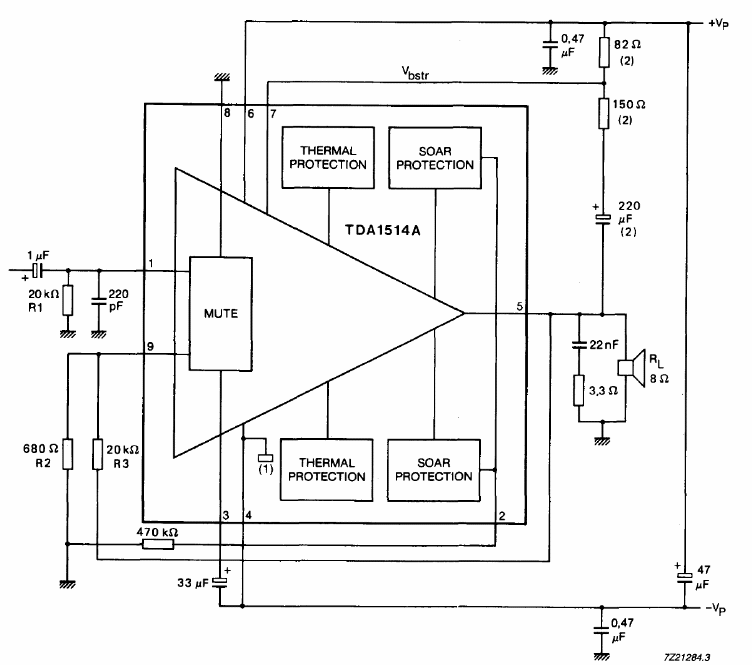 We found this circuit in the Philips integrated circuits manual of 1990. The circuit must be powered by a symmetrical high current source. The integrated circuit must have a good heat radiator.