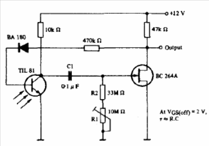 The selected circuit is from an opto-electronic publication by Texas Instruments. The FET admits equivalent and the trigger point is adjusted in the trimpot. The circuit admits use as a shield for microcontrollers.