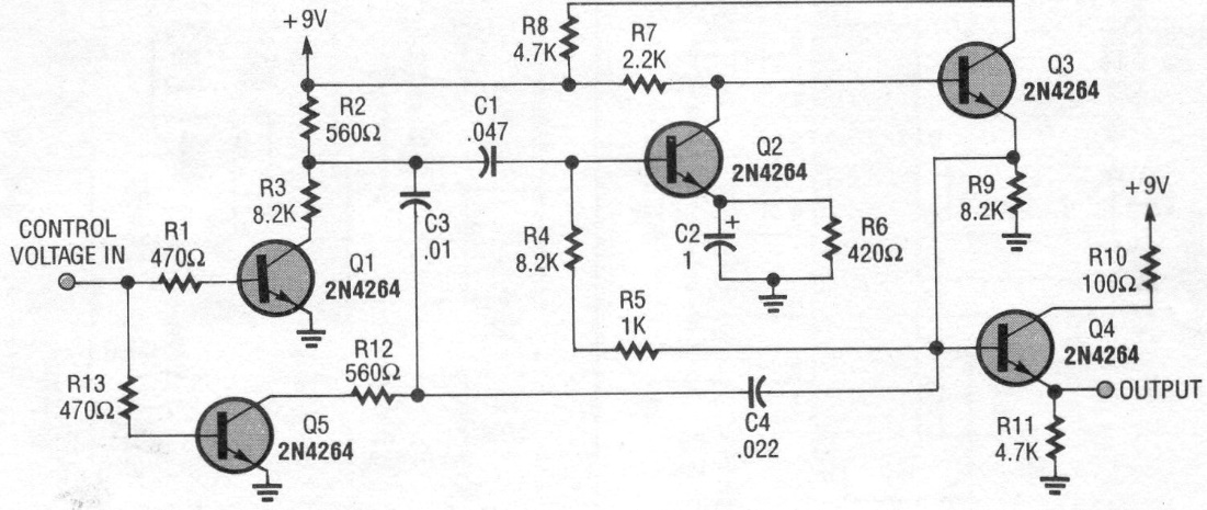 This circuit was found in a technical documentation from the 90's. The transistors can be equivalent general-purpose, and the frequency depends on the capacitors, which can be changed according to the application.
