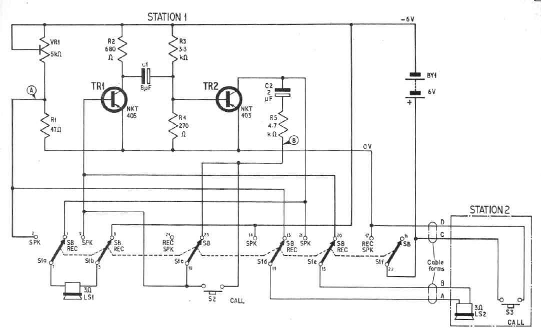 This circuit is from an old English publication from 1968. We can implement it with TIP32 transistors in a more modern version. Power can be done with either large batteries or a power supply.