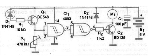 What differentiates the CIR8139 circuit is the use of two inverter ports to trigger the transistor that controls the fan. In this way, the drive is made using an NPN transistor instead of a PNP transistor. The adjustment of the trigger point is made in the trimpot and again the sensor is a common diode for general use. We observed that, as the diode has a certain thermal capacity, its activation or response to temperature variations requires a certain time. For higher powers, transistors such as the TIP31 and power Darlingtons can be used. With 9 V or 12 V power, it is possible to use power MOSFETs. These drive transistors must be equipped with heat radiators.