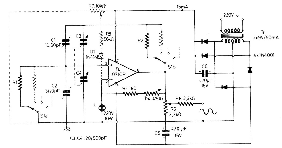 Instead of the lamps, LEDs can be used in series with 470 ohm resistors. The circuit is from an...