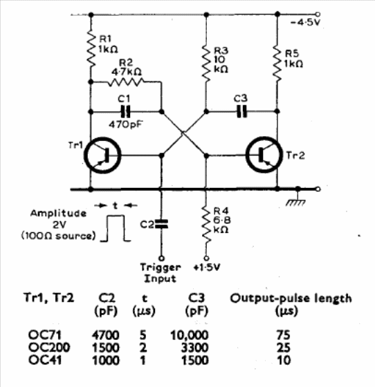 This circuit was found in the 1960 Mullard transistor reference manual. The circuit can be designed with modern equivalent silicon transistors.