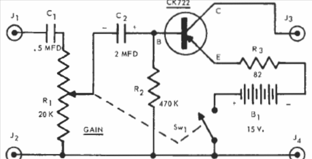 This circuit is from 1957 Raytheon documentation. The phone must be high impedance with 600 ohms or more and equivalent transistors can be used, such as the BC548.