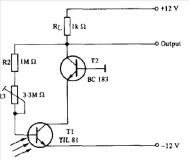 The circuit shown in the figure has a quick response using T2. The trimpot adjusts the sensitivity. The circuit is from a Texas Instruments opto-electronics manual. The transistor can be the BC548 and the power supply is symmetrical.