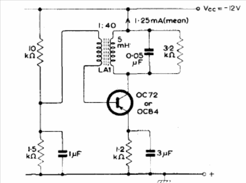 We found this circuit in the old Mullard transistor reference manual from 1960. The frequency can be changed by the coil and capacitor in parallel.