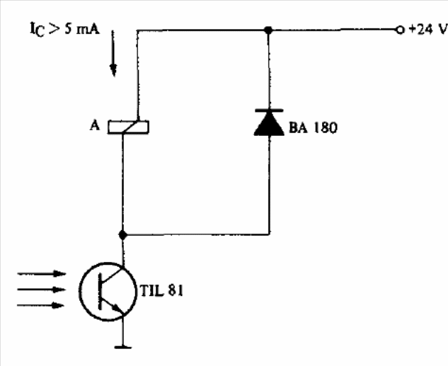 This circuit makes use of a sensitive 5 mA reed-relay to be driven directly by a phototransistor. The phototransistor can be replaced by an equivalent. The configuration is from a Texas Instruments optoelectronics manual.
