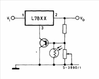 In this circuit the output voltage depends on the light that falls on the LDR, decreasing when the light increases. The circuit is from the 1982 SGS linear integrated circuit manual. R1 can be 220 ohms and the trimpot 4k7. The transistor can be the BC558.