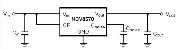 The circuit shown in the figure consists of a 200mA low voltage drop (LDO) regulator using the NCV8570 integrated circuit, a new semiconductor from On Semiconductor (www.onsemi.com). The integrated circuit used can be chosen to have output voltages of 1.8 V, 2.5 V, 2.75 V, 2.8 V, 3.0 V and 3.3 V. Noise is only 15 uVrms and it has thermal shutdown.
