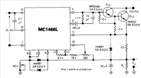 The integrated circuit used in this project is uncommon and so are the transistors, but they can be replaced by equivalents. The circuit is from Motorola's 1990 Linear Databook.