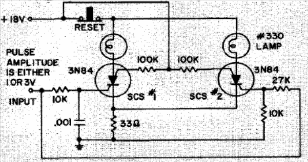 This circuit uses a thyristor (four-layer device) in a trigger circuit that works like a flip-flop. The circuit is from the 1977 GE semiconductor manual.