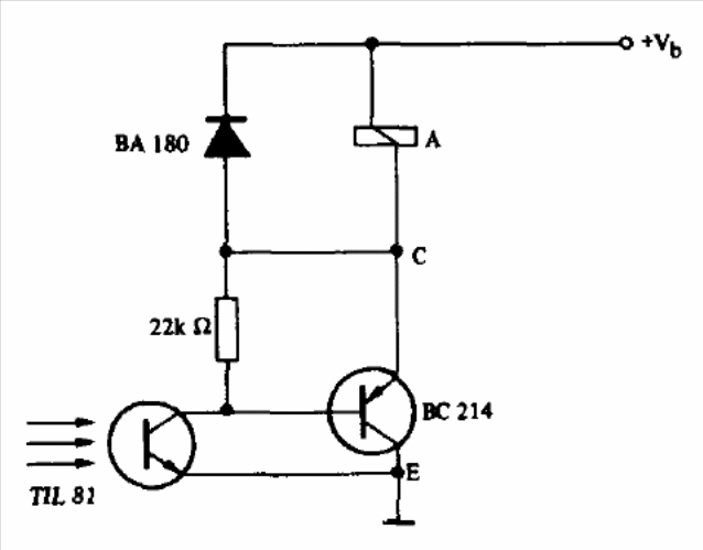 This circuit is from a 1978 optoelectronics manual from Texas Instruments. The transistor can be a more modern equivalent, just like the photodetector. The relay current is a maximum of 20 mA and the supply depends on the coil of this component.