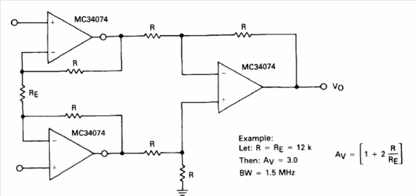 This circuit is from Motorola's Linear Databook published in 1990. We can design it with more modern operators. The power supply must be symmetrical. The values of R are given by the formulas.