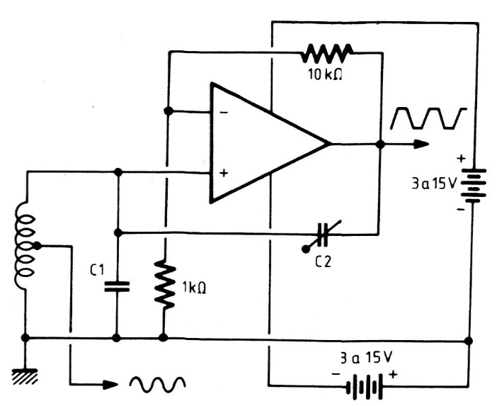 The maximum frequency of this circuit depends on the operational, reaching a few hundred kilohertz. The circuit is from French documentation from 1982 and applies to almost any type of operation. For this version the power supply must be symmetrical. L and C determine the frequency.