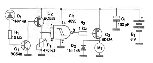 Another way to increase the sensitivity of the circuit with the amplification of the sensor current is through the configuration with complementary transistors shown in the figure. When Q1 drives, by reducing the resistance of the sensor (increasing the temperature), transistor Q2 also drives and thus the logic level at the door input rises. With switching the output goes to low level saturating transistor Q3. With Q3 driving, the engine is started, providing the desired ventilation. The circuit can be supplied with voltages from 5 to 12 V depending on the voltage of the motor used. The Q3 transistor must have a heat radiator and higher current equivalents can be used. Power Darlingtons and even 12 V power MOSFETs can also be used.