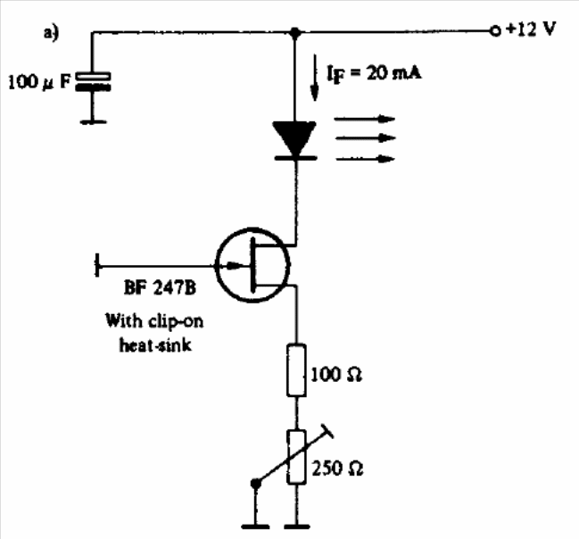 This circuit is from a 1978 Texas Instruments optoelectronics manual. The trimpot adjusts the LED current. Other currents can be adjusted if they are within the capacity of the FET.