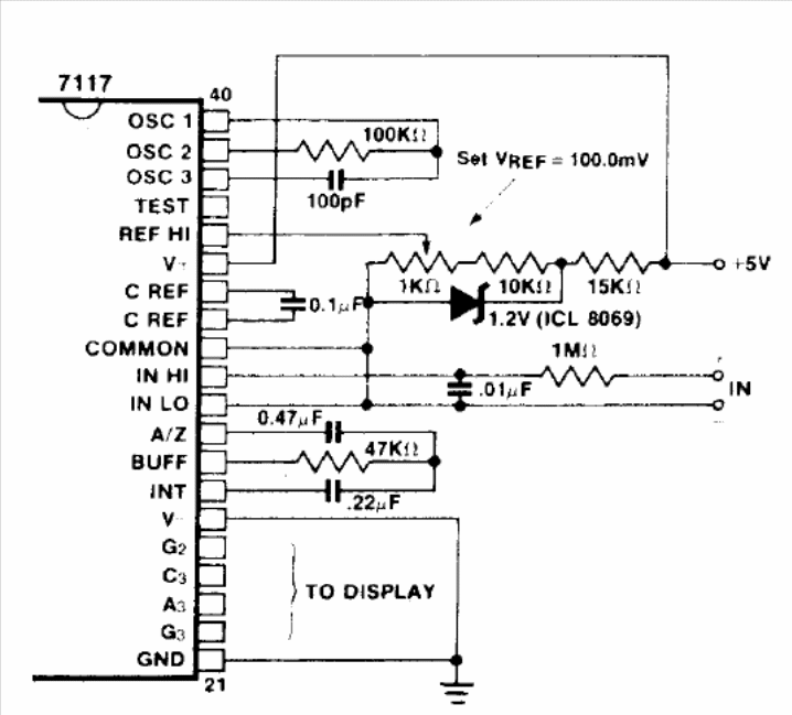This circuit has a 2 V full scale using a 4-and-a-half-digit A / D converter. The circuit is powered by a voltage of 9 V. We found this configuration in the 1983 Intersil Databook.
