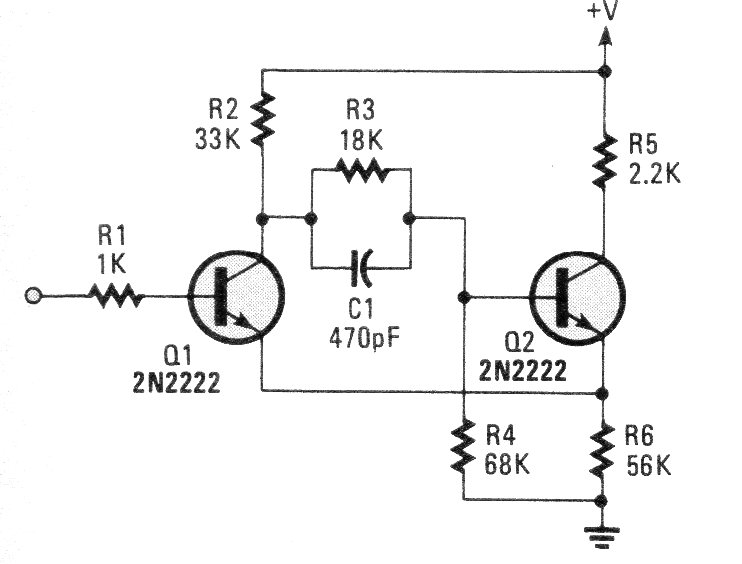 This circuit was found in an 80's Poptronics. The circuit is a fast trigger whose signal can be taken from the Q2 collector. The supply can be done with voltages from 9 to 12 V.