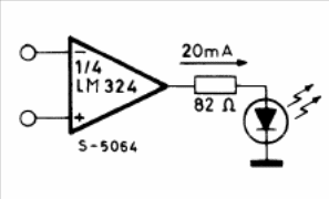 In the figure we have the way to excite an LED with one of the 4 operational ones available on the LM324. The resistor can be changed to obtain other excitation currents.